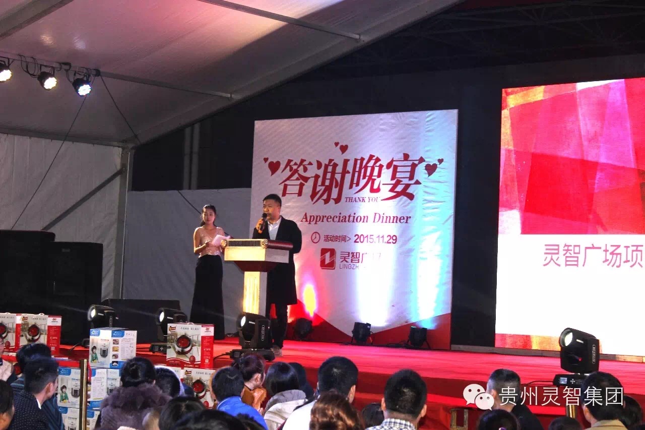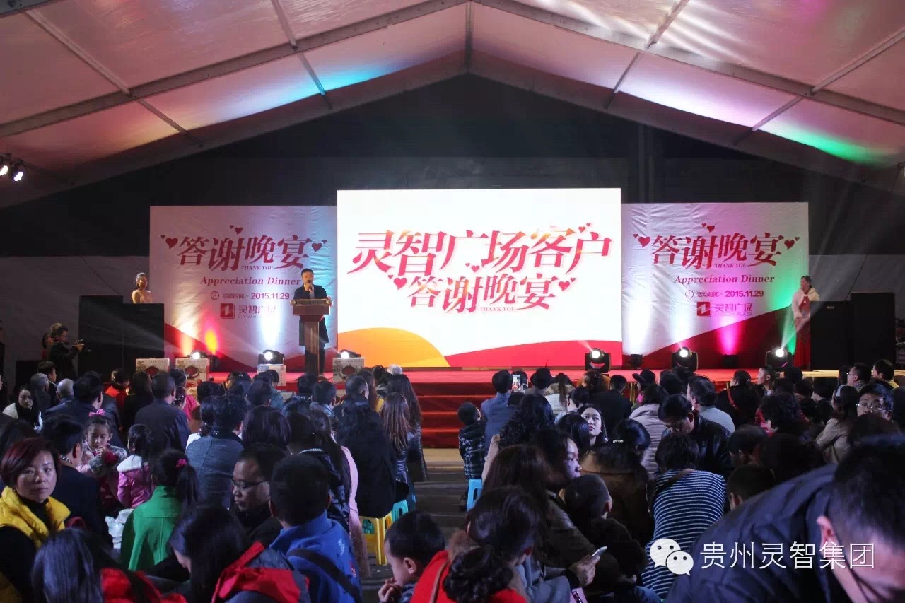 11月29日,由靈智集團主辦的 “年終客戶(hù)答謝晚宴”客戶(hù)答謝活動(dòng),在靈智廣場(chǎng)盛大舉行,活動(dòng)現場(chǎng)人頭涌動(dòng),熱鬧非凡,到場(chǎng)客戶(hù)約2000人,可以說(shuō)達到了都勻地產(chǎn)界有史以來(lái)之最!