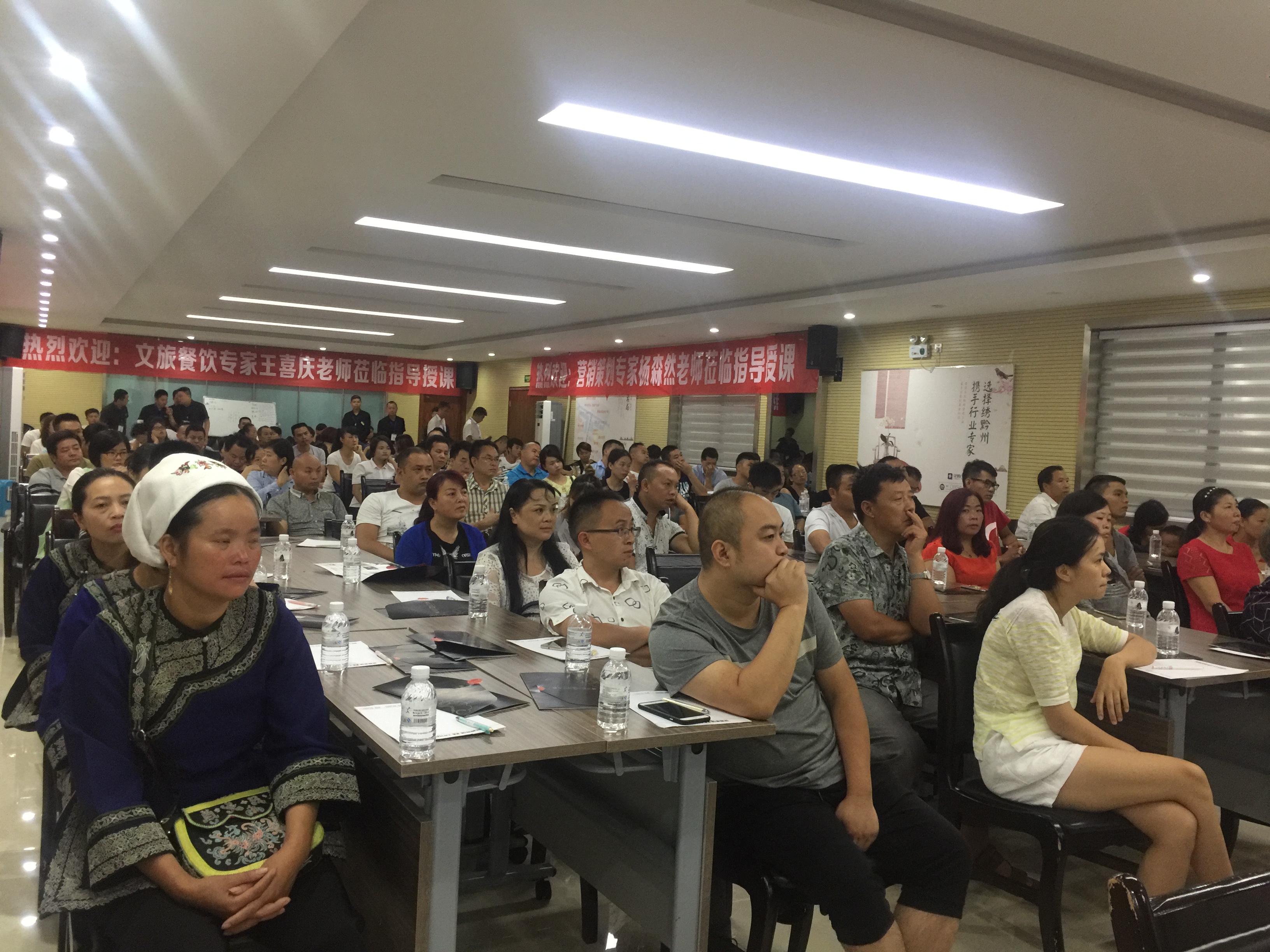 2017年8月29日上午,著(zhù)名文旅餐飲專(zhuān)家王喜慶、文旅餐飲專(zhuān)家張遠義、營(yíng)銷(xiāo)策劃專(zhuān)家楊森然三位老師不遠千里來(lái)到靈智廣場(chǎng),為繡黔州商戶(hù)指導授課。